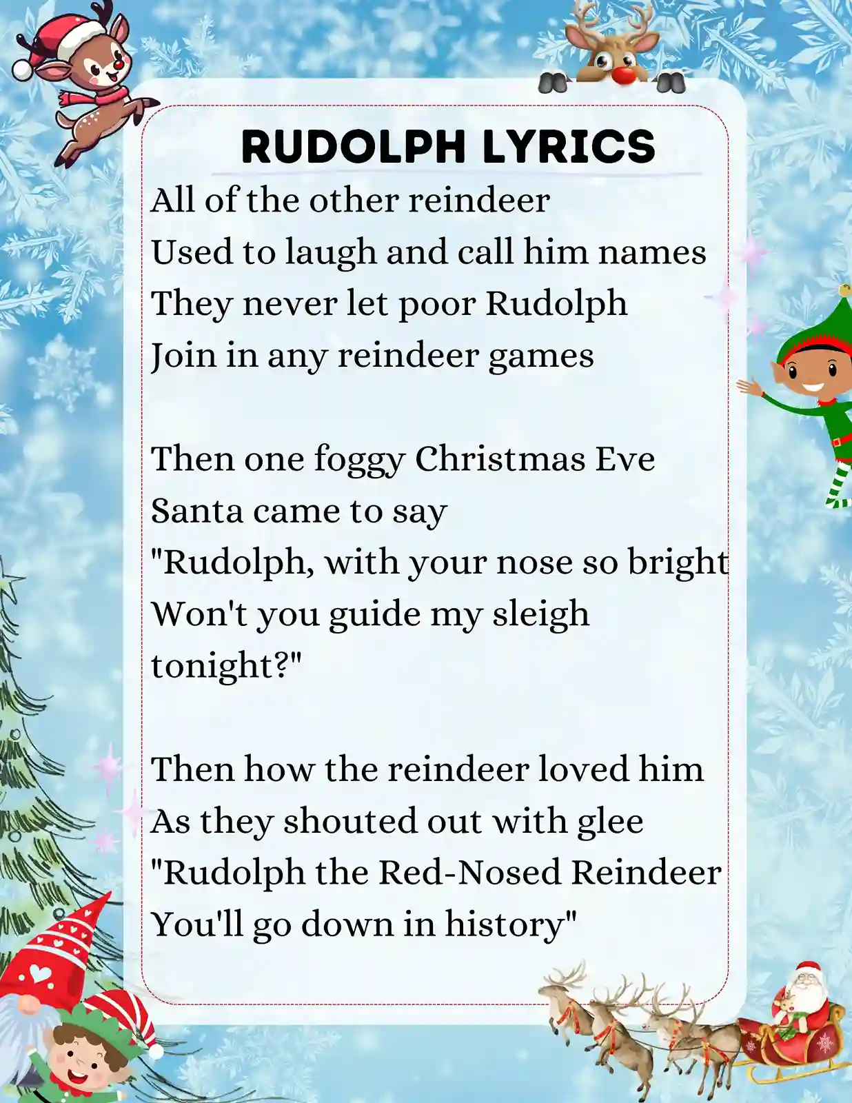 Printable Lyrics Rudolph The Red Nosed Reindeer | Plan …